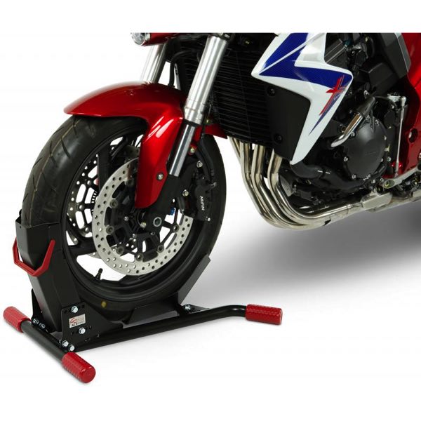 Met de Acebikes SteadyStand parkeer jij je motor moeiteloos, stabiel en veilig. Geen gesleep met zware bokken, geen wiebelende tweewielers meer. Gewoon neerzetten, vastklemmen, klaar. Ideaal voor dagelijks gebruik, maar ook perfect voor in de winterstalling of bij onderhoud.