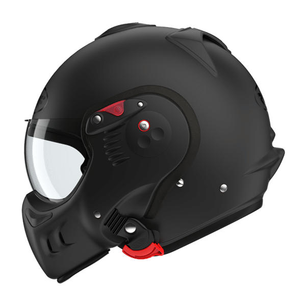 De ROOF Boxer Alpha is ontworpen en getest in Frankrijk, waar hij aan de hoogste kwaliteitsnormen voldoet. Getest onder extreme omstandigheden van -10ยฐC tot +50ยฐC, doorstaat de helm de zwaarste rijomstandigheden. Dankzij het FlexLocker-systeem, een exclusief patent van ROOF, biedt de helm zowel in de jet- als full-face-modus maximale veiligheid.