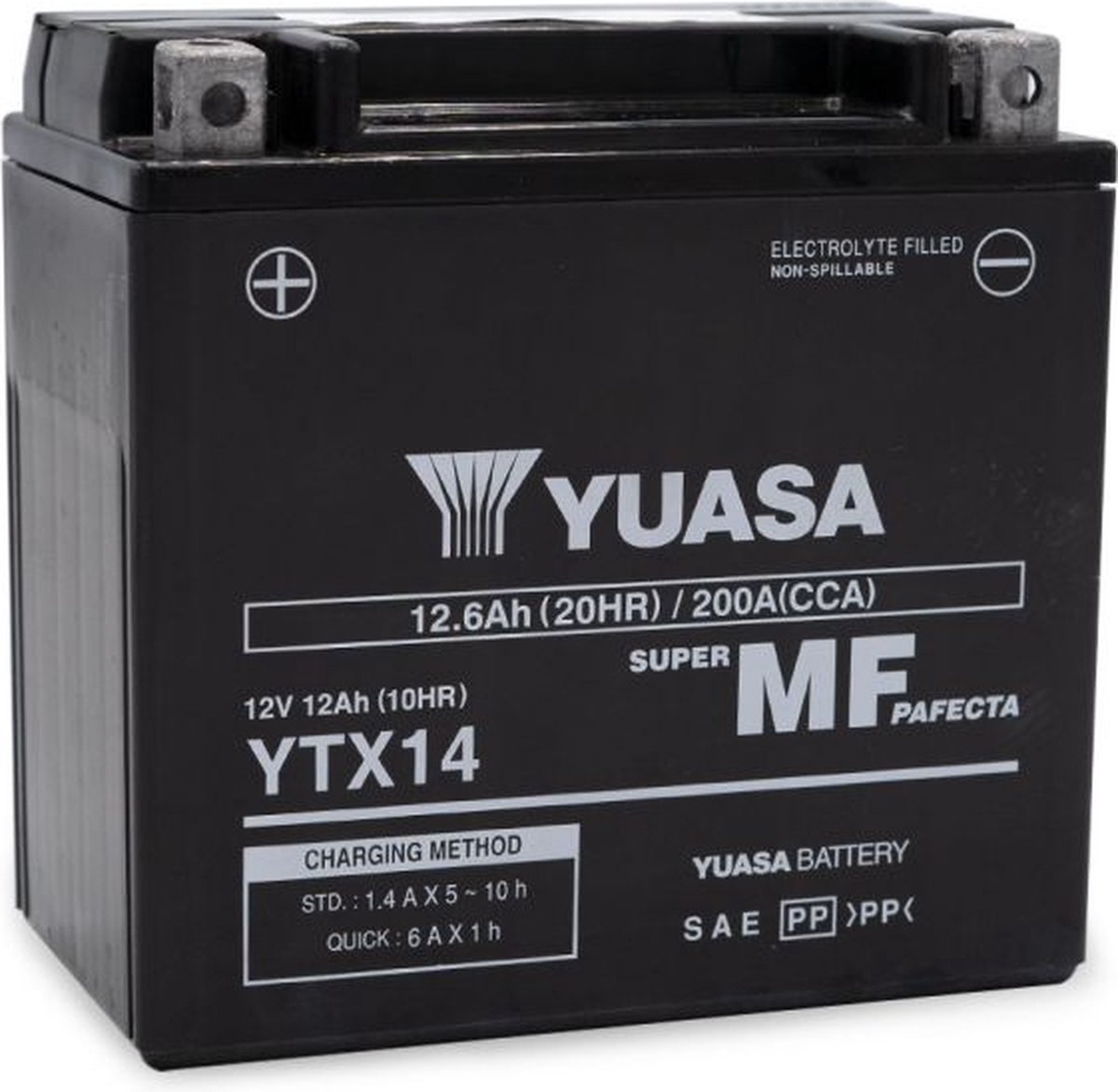 De Yuasa accu YTX14-BS is een hoogvermogen 12 volt motorfietsaccu met een capaciteit van 12 Ah, speciaal ontworpen voor uitstekende prestaties en betrouwbaarheid. Deze accu maakt gebruik van AGM (Absorbent Glass Mat) technologie, wat hem volledig onderhoudsvrij en zeer duurzaam maakt.